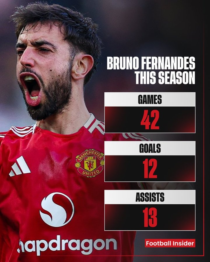 本賽季,B費(fèi)各項(xiàng)賽事出場(chǎng)42次,貢獻(xiàn)12個(gè)進(jìn)球和13個(gè)助攻,并創(chuàng)造了87次機(jī)會(huì)。