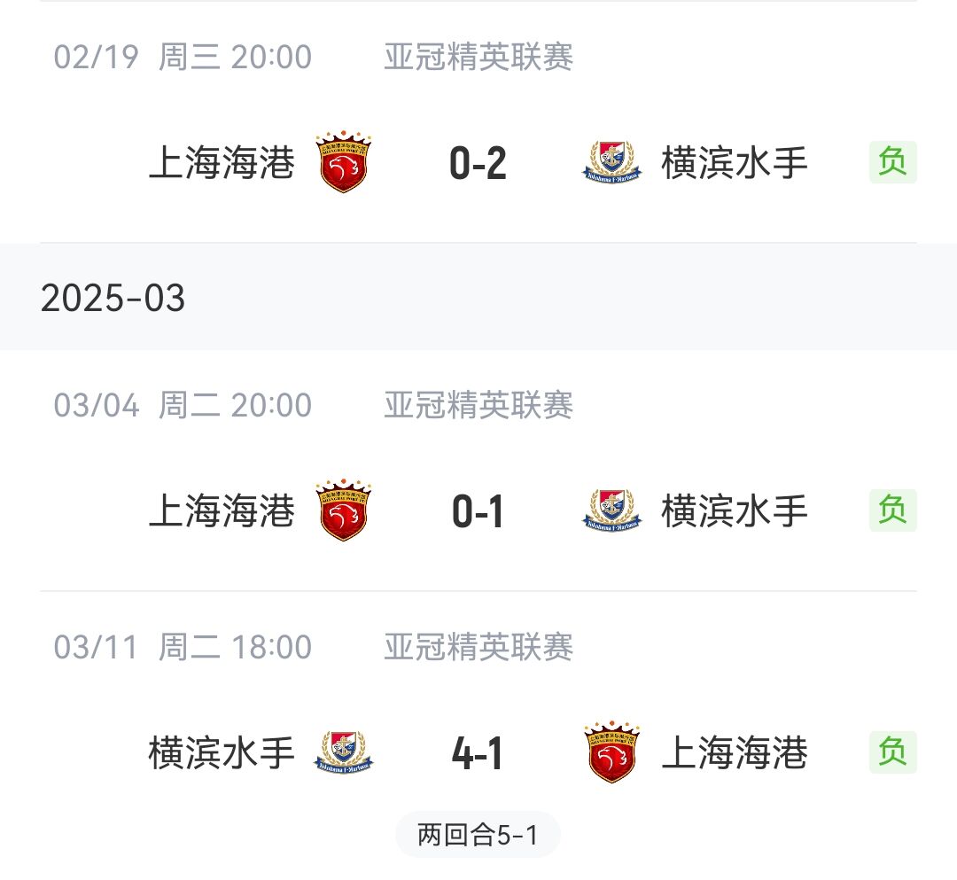 近期,上海海港已經(jīng)遭橫濱水手三殺,在聯(lián)賽階段末輪,上海海港主場(chǎng)0-2不敵橫濱,隨后又在16強(qiáng)中0-1、1-4輸球。