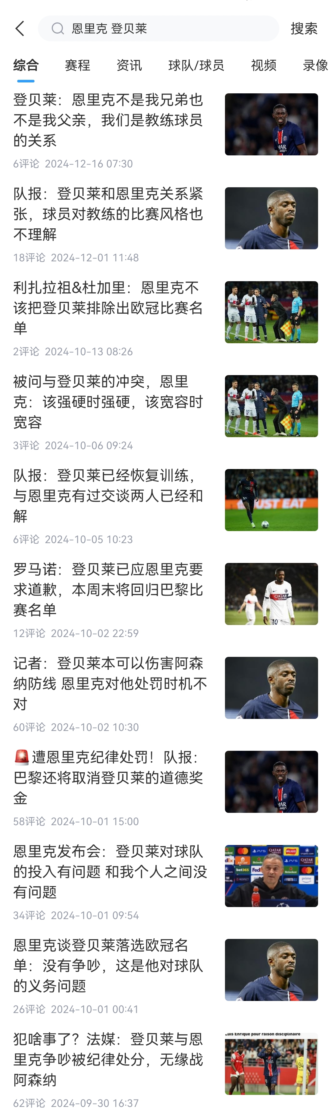 去年下半年,有關恩里克與登貝萊不和的報道經常見諸報端,恩里克否認二人有過爭吵,但球員因內部停賽缺席了對阿森納的歐冠是不爭的事實。