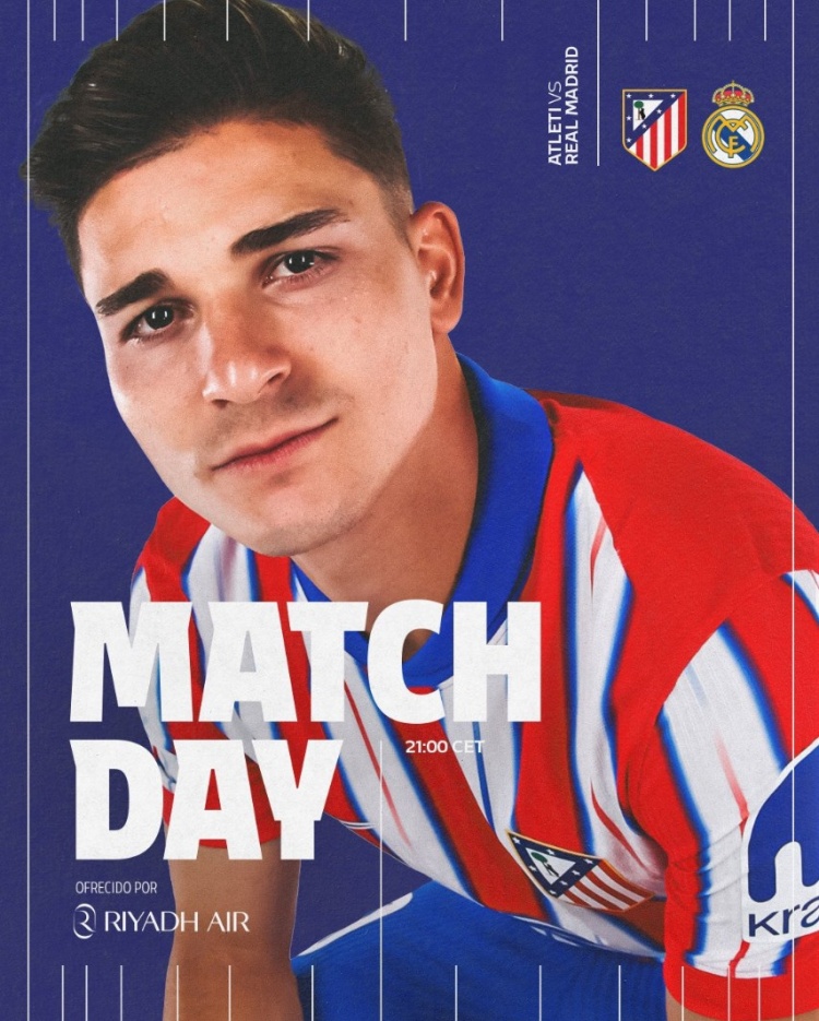 馬競方面也發布海報,上一場兩隊交手時取得進球的阿爾瓦雷斯單人出鏡,右上角為對陣雙方隊徽。