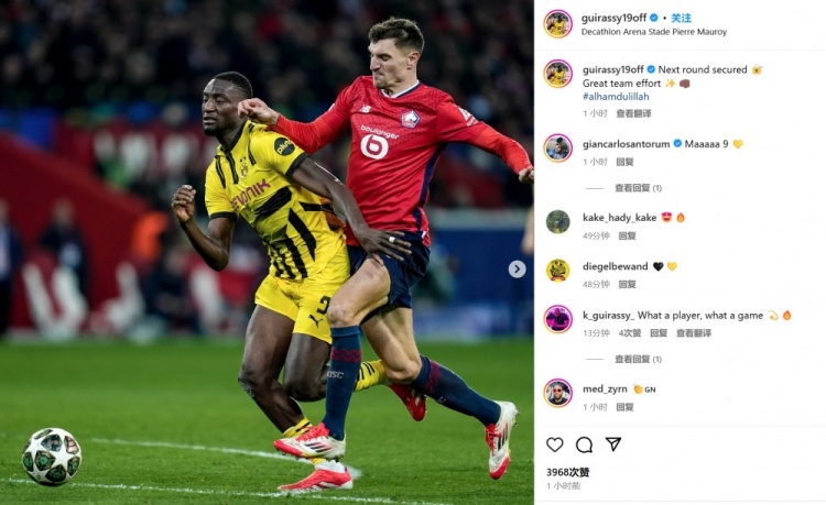 吉拉西也在賽后通過社媒曬出自己的比賽照,并配文:“成功晉級下一輪!全隊發揮很棒!”