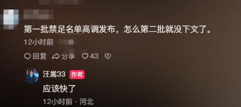 網友:第一批禁足名單高調發布,怎么第二批就沒下文了。